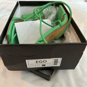 Green Ego wrap-up heels (shown worn in white). Worn once for pictures only. Caution that the box appears to show a size 7 but that is a UK size, the US size 9 is listed next to it