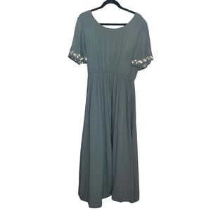 Wren & Ivory Sage Green Floral Embroidered Wrap Short Sleeve Maxi Dress Sz Large