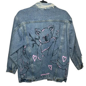 Wren+Glory hand painted Australia theme koala denim jean jacket medium blue M