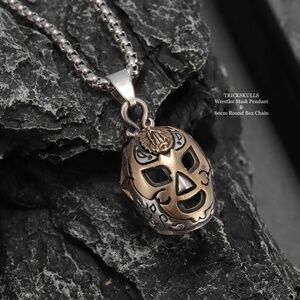 Wrestler Wrestling Mask Silver & Gold Pendant 60cm Stainless Round Box Chain