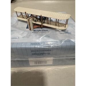 The Hallmark Legends In Flight Wright Flyer (N2) is a 1:48 scale propeller plane model made of white plastic. Manufactured in the year 2000, this replica of the Wright Flyer pays tribute to the legendary aircraft family with its detailed design and authentic features. Ideal for history enthusiasts or aviation collectors, this Hallmark model captures the essence of one of the most significant milestones in aviation history. New in box. Photo taken from another model that had been opened.