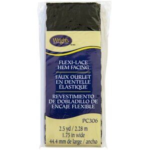 New with tags. Black 100% nylon lace hem / trim facing. Flexi lace hem facing is perfect for hems that aren't always hidden. Made 100 percent nylon. Features colorfast, quick, easy and neat hem facing. It is machine washable. Available in black; measures 2. 5-yards length by 1-3/4-inch width.