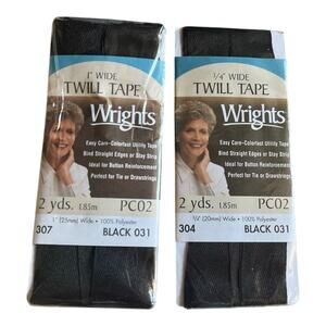 Wrights Twill Tape 1” & 3/4” Wide Black White 2yds Each Lot of 3 NEW Vintage