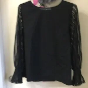 Sheer sleeve striped black top detailing on cuffs