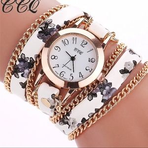 Gorgeous Watch that wraps around wrist. White with gold chain and flower detail.