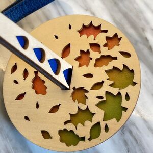 Wristlet Yarn Holder Dispenser Carousel Spinner Crochet Knitting Leaves Design Sustainable Minimalist Wood Handmade Gift