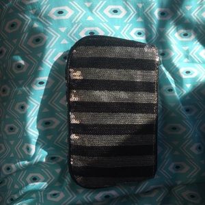 Black and silver sparkly wristlet. In great condition basically like new!!