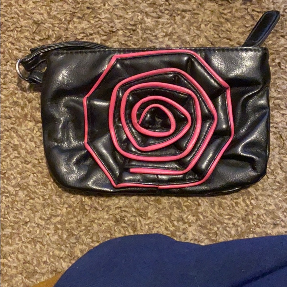 Black with pink flower wristlet