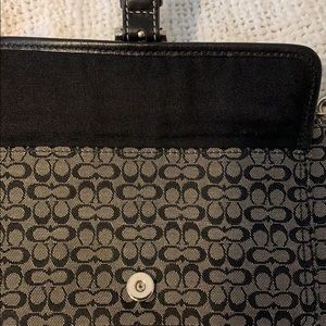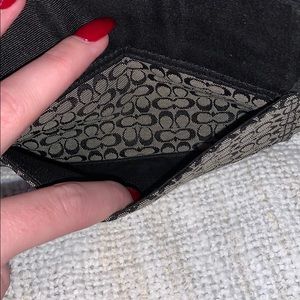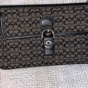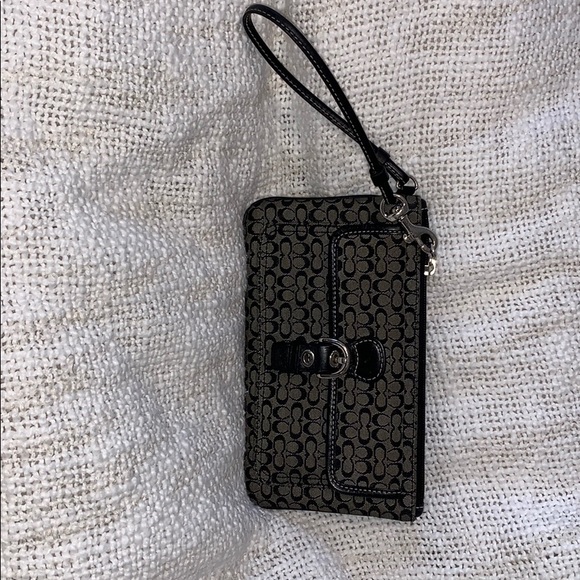 Black and gray coach Wristlet with a buckle detail on the front pocket in perfect condition no stains or scratches anywhere
