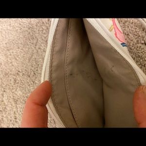 Coach wristlet - only flaws is a faint pencil mark in the inside (last picture) and a faint pencils mark on the outside which is unnoticeable (first picture).