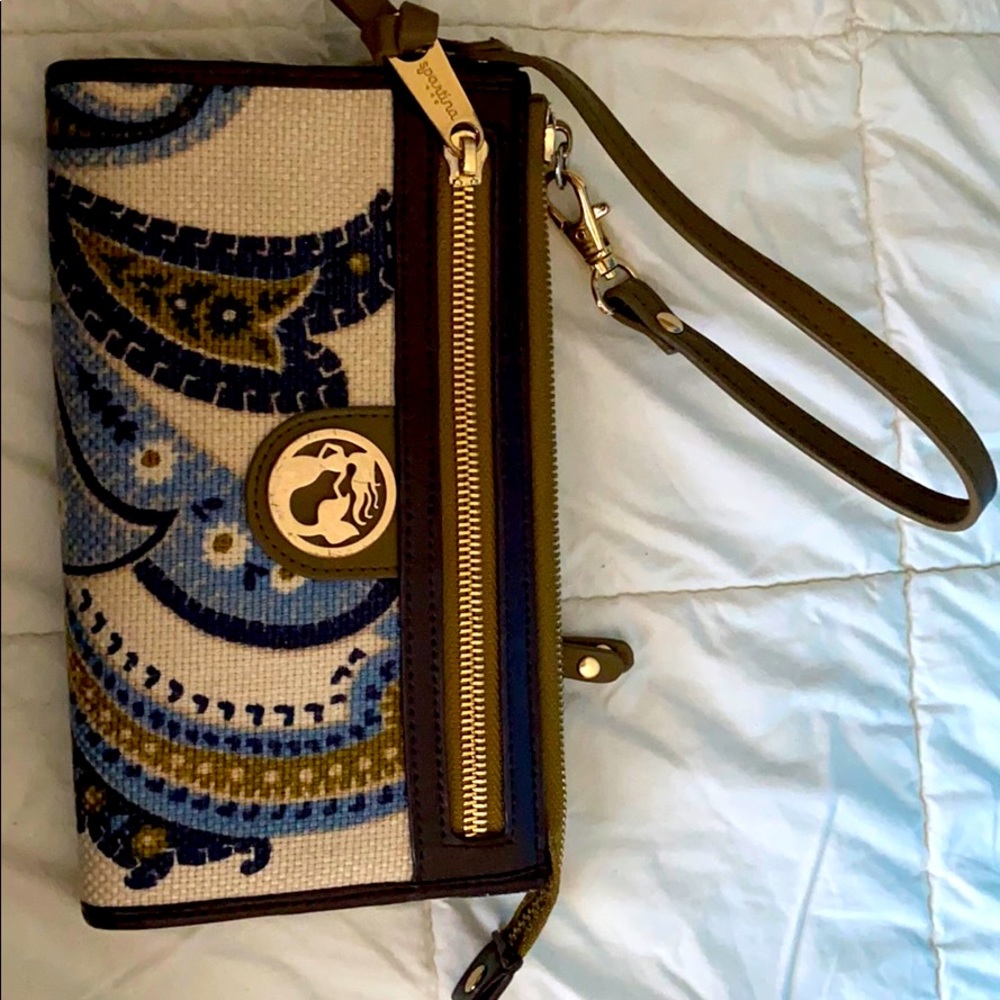 Cute wristlet with card holder slots and 2 medium slots. Zipper in front and Zipper in back.