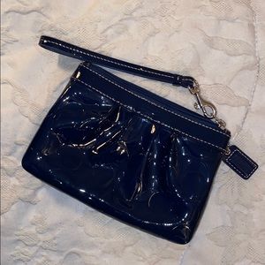 Fashionable Coach patent leather wristlet in beautiful midnight blue. Gently used condition
