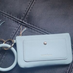 nanette lepore aqua teal wristlet, used once for a wedding. small & cute as well as functional. It holds all the essentials for a night out while keeping it light.