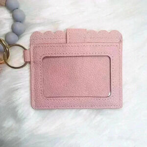 Wristlet Card Wallet Bracelet in Pink Silicone bracelet has the elasticity to fit and adjust to your wrist size New 3 Slots Card Wallet Card Case Approximately 4.2 “ length Approximately 4.5” width Faux leather
