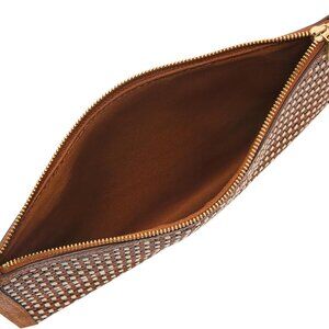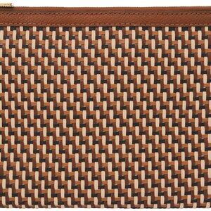 Features: Compact wristlet pouch with a woven faux leather exterior, secure zipper closure, and lightweight design. Great for keeping cards, cash, or small essentials handy.