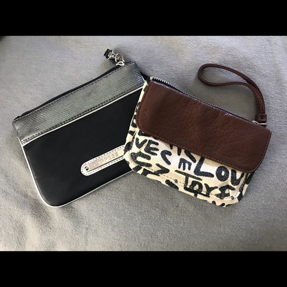 One black express wristlet. One cream/brown/navy wristlet from Aeropostale. Cream one has a magnetic pocket on the outside.