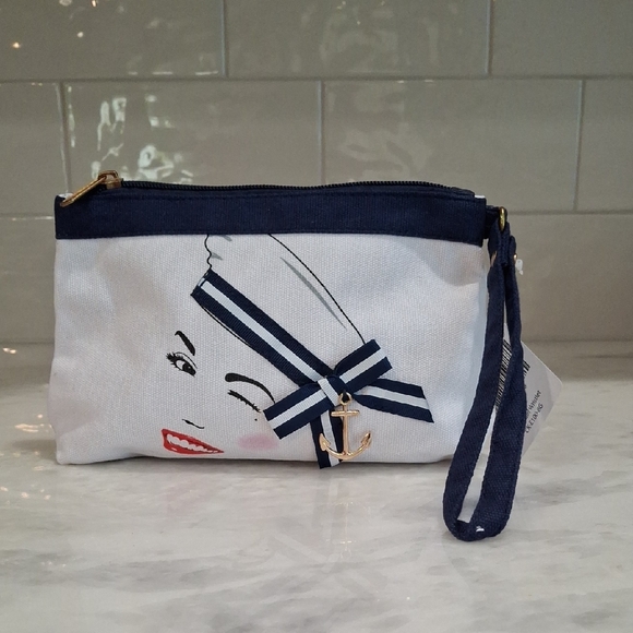 princess cruises sailor girl wristlet, zip closure, cute anchor, white & navy blue, NWT.