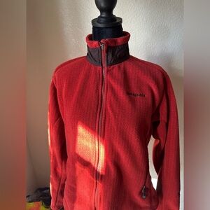 The W's R3® Radiant Jacket by Patagonia is a women's red polyester jacket in size M. This basic jacket features a regular fit and is designed for warmth and comfort. With a vintage style, it is suitable for various outdoor activities and everyday wear. Perfect for cooler weather, this jacket offers a stylish and functional addition to any wardrobe.