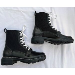 Shiloh boot by rag&bone, in excellent condition, worn only twice. Black cow leather, white laces, chunky lugged rubber outsole. Stretch inserts at the shaft for easy in and out, and pull tab.