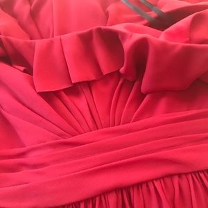 Wtoo by Watters Red dress with flutter partial sleeve, chiffon like layer on top, A-line shape, low back. Excellent Condition!!!