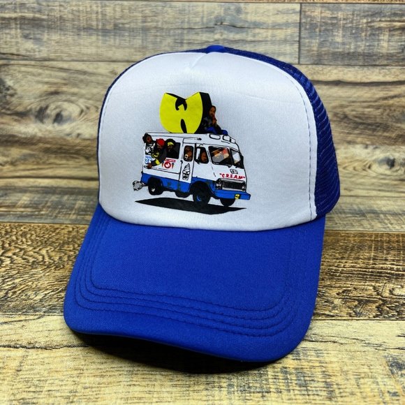 Wu Tang Clan Ice Cream Truck Mens Trucker Hat Blue Snapback 90s Hip Hop Rap Cap