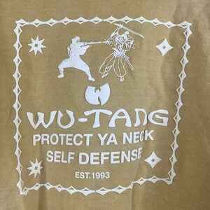 Wu-Tang Clan Protect Ya Neck Pullover Hoodie Sweatshirt Men's Size M. Pullover sweatshirt topped with puff print Wu-Tang Clan graphics at the chest & back. Cotton poly blend fabrication with an adjustable hood and kanga pocket. Finished with ribbing trims. Spot at the back neck area, please see images.