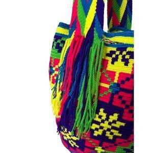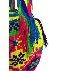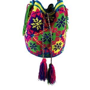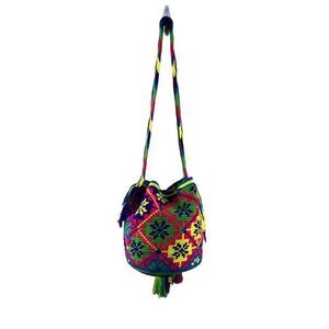 Wuitusu Columbian Handmade Wayuu Mochila Crossbody Bucket Bag Tassels Colorful