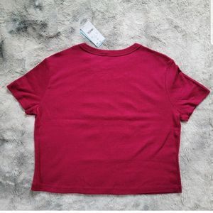 Wukanda Forever Burgundy Graphic Short Sleeve Crop Tee NWT Women's Sz. Medium