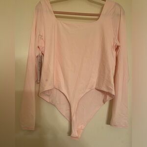 Rare no longer sold, Lululemon wundermost long sleeve square neck bodysuit, nulu material, strawberry milkshake color, size XL. NWT.