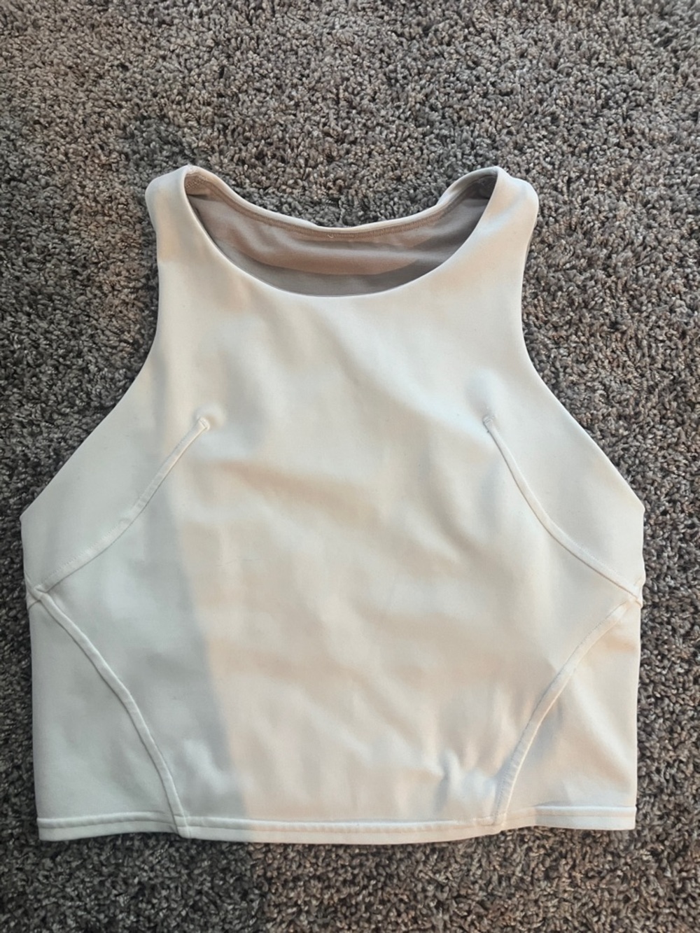 High neckline crop top from lululemon athletica. Smooth, stretch fabric for easy movement. Subtle seam accents for a streamlined look.