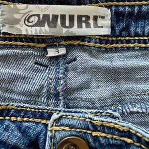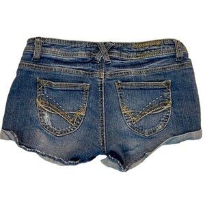 Wurl Short Shorts. 2 Front pockets, 2 back pockets. Button fly. 99% Cotton 1% Spandex. Size 3 approximate measurements laying flat: 14” waist, 10” length, 2 1/2” rise.