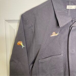 Grey jacket with embroidered snails. 4 front pockets, pleated sleeves. High quality and comfortable. So perfect for fall and winter!