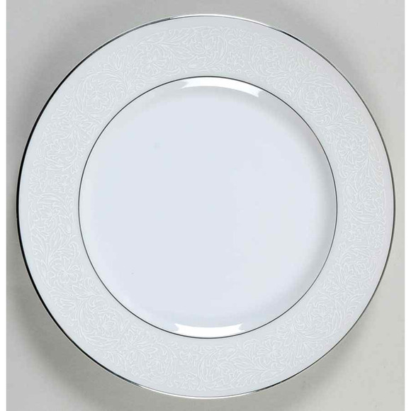 Wyndham Dinner Plate Bridal Lace 10-5/8" White Platinum Silver Trim Japan