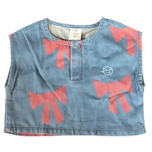 Wynken Girl's Blue & Red Sleeveless Twill Bow Print Shirt, Size 2Y
