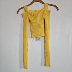 Rib knit silk, aloe vera, and cotton-blend crop top. · Off-the-shoulder construction · Boat neck · Cropped hem · Cut-out at shoulders