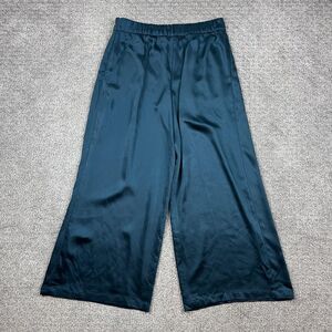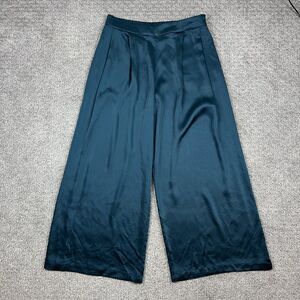 Wynne Collection Pants Womens Large Teal Wide Leg Satin Pleated Dressy Holiday