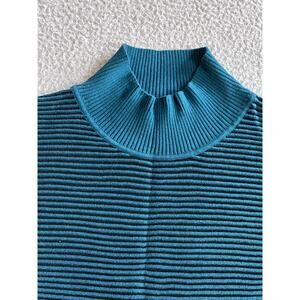 Wynne Layers Tank Top Sweater Large Sleeveless High Neck Striped Blue Black
