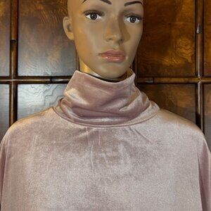 This lovely cushy velvety soft top is a definite gem. Her sophisticated turtleneck, exquisite sheen, bracelet length sleeves, sexy side slits, and exquisitely chic feminine hue are quintessential chic elements.