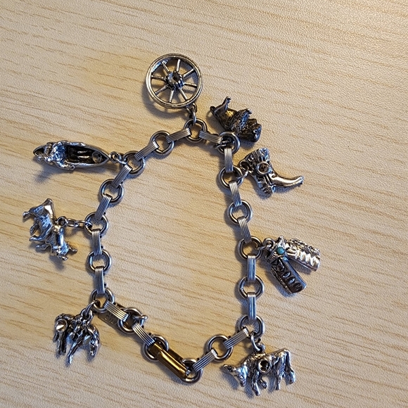 Wyoming Charm Bracelet Western Themed Nickel & Sterling Silver Charms Cowboy