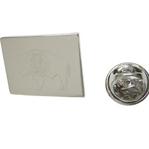 Wyoming State Map Shape and Flag Design Lapel Pin