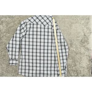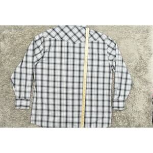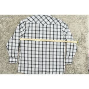 For sale is a preowned Wyoming Traders men's casual button-down shirt in size 3XL (regular). It features a multifarious color scheme, long sleeves, and is crafted from cotton. The shirt measures 28 in from pit to pit and 36 in in length, offering a comfortable fit. Ideal for those who appreciate a blend of style and comfort in their casual wear.