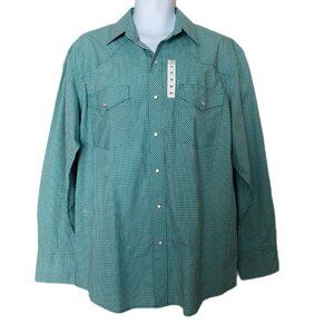 Wyoming Traders Western Men's Green Check Pearl Snap Button Up Shirt M NEW