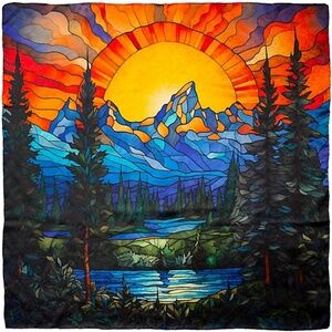 Wyoming Traders Wild Rag Teton Burst Cowboy Print 100% Silk Scarf - 34.5"