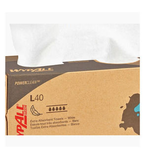 WypAll L40 #05790 Power Clean Extra Absorbent Multipurpose Disposable Towels Box Of White 100 Ct 9.8" X 16.4". This shop towel Easily absorbs liquids, lubricants and oils spills quickly. Perfect for auto repair and general maintenance.