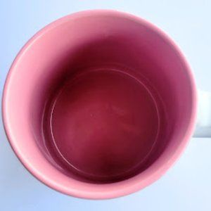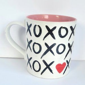 THIS IS A VERY NICE MUG WITH BLACK X's AND O's "KISSES AND HUGS" WHITE MUG WITH RIDGES, RED HEART AND PINK INTERIOR MEASURES APPROX 4" TALL 20 OZ