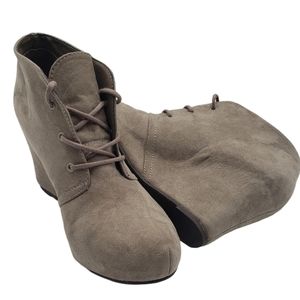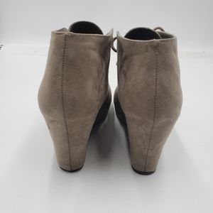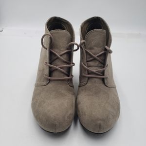 X Appeal Flynn Womens 8 Wedge Bootie Tan Fabric Lace Up 3.5 In Platform.
