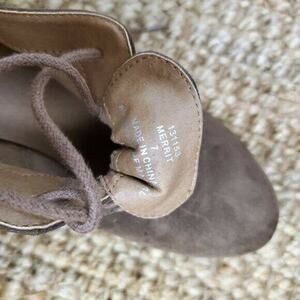 X Appeal Merrit Womens Bootie Size 7 Tan Suede Almond Toe Lace Up Wedge