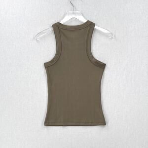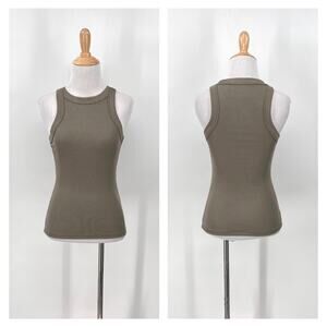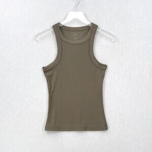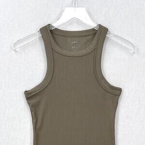 X BY GOTTEX Ribbed Motto Tank Top Womens Medium Olive Green Racerback Stretch