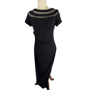 X BY XSCAPE ILLUSION BOAT NECK SHORT SLEEVE DRESS IN BLACK NWT WOMEN'S SIZE 8P