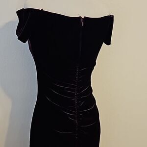 X By XSCAPE Purple Zippered Velvet Short Sleeve Off Shoulder Cocktail Dress 8